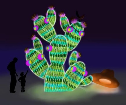 皮納塔早期是以慶祝阿茲特克文明的太陽神、戰神-維齊洛波奇特利,爾後逐漸發展成拉丁美洲重要慶典「波薩達」posadas中重要的儀式活動之一,藝術家-路瓦・里維拉Lua Rivera利用回收布料、金屬,將歷史悠久的皮納塔文化及象徵充滿韌性、生命力的仙人掌形象融合,製作出大型的皮納塔互動藝術裝置。